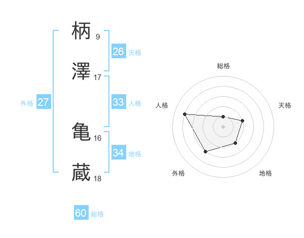 柄澤 亀蔵さんの総格は60画の1点!