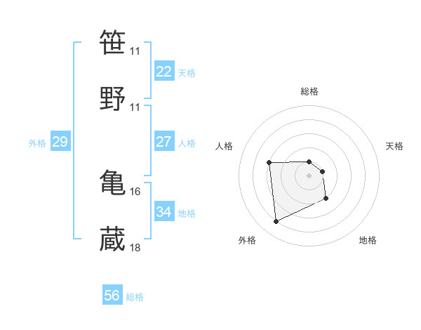 笹野 亀蔵さんを姓名の画数から五運を鑑定