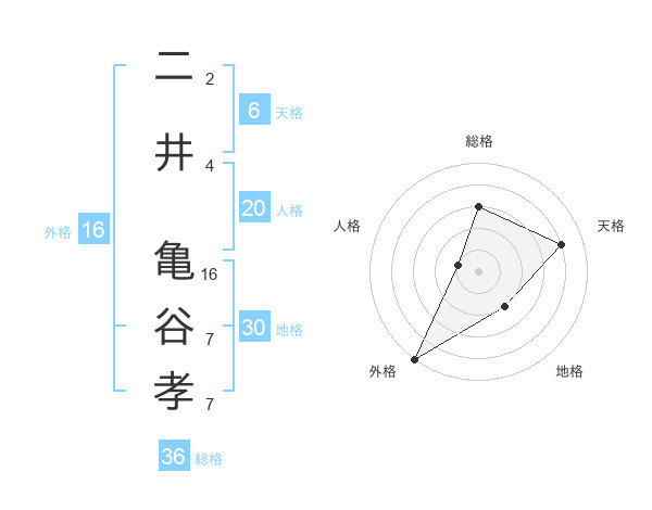二井 亀谷孝さんを姓名の画数から五運を鑑定