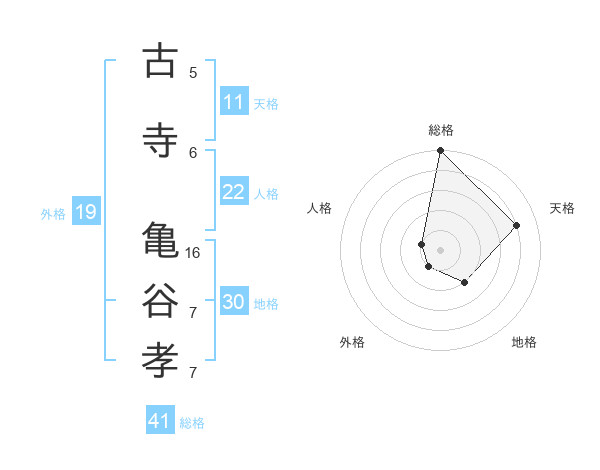 古寺 亀谷孝さんの総格は41画の5点!