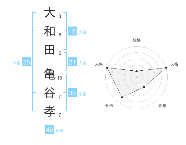 大和田 亀谷孝さんを姓名の画数から五運を鑑定