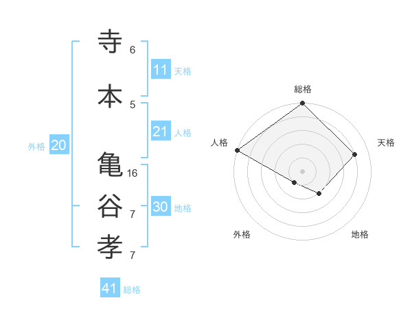 寺本 亀谷孝さんの総格は41画の5点!