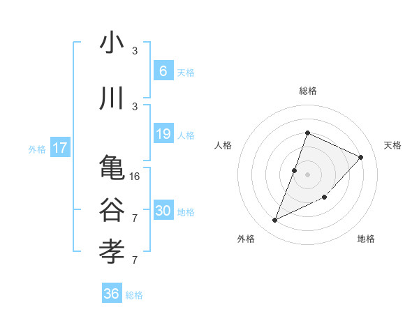 小川 亀谷孝さんの総格は36画の3点!