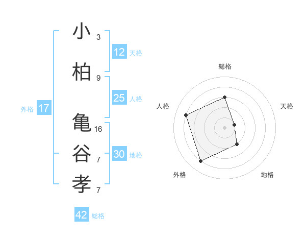 小柏 亀谷孝さんの総格は42画の3点!