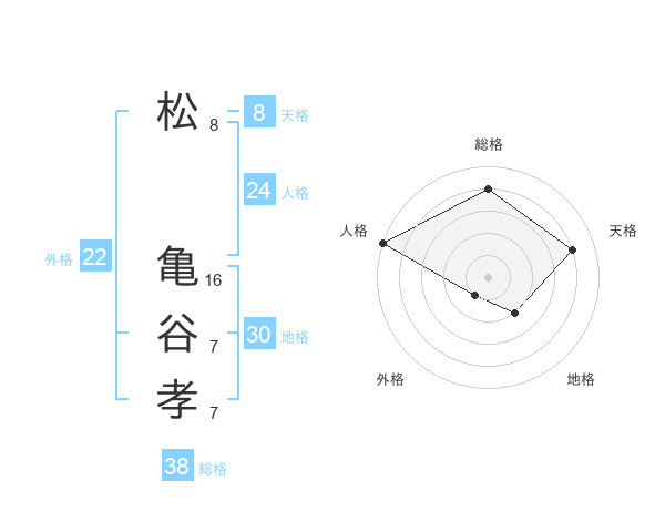 松 亀谷孝さんの総格は38画の4点!