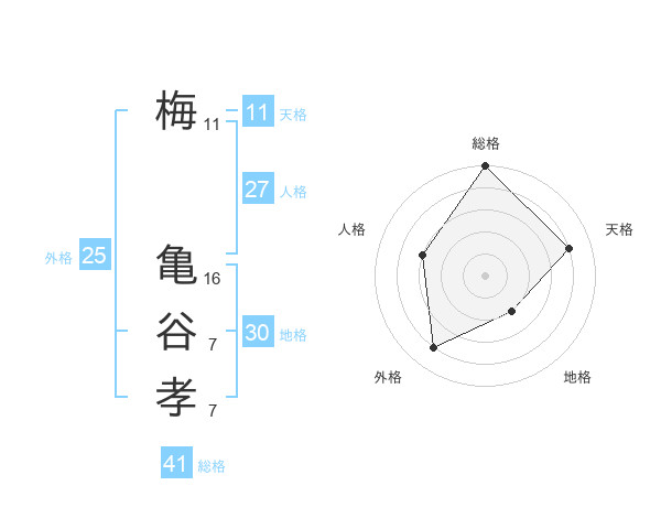 梅 亀谷孝さんを姓名の画数から五運を鑑定