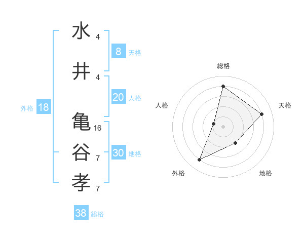 水井 亀谷孝さんの総格は38画の4点!