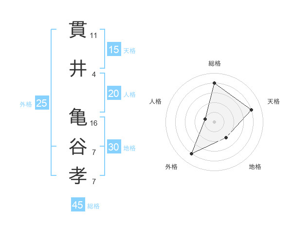 貫井 亀谷孝さんを姓名の画数から五運を鑑定