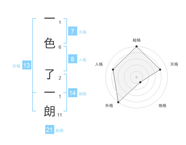 一色 了一朗さんの総格は21画の5点!