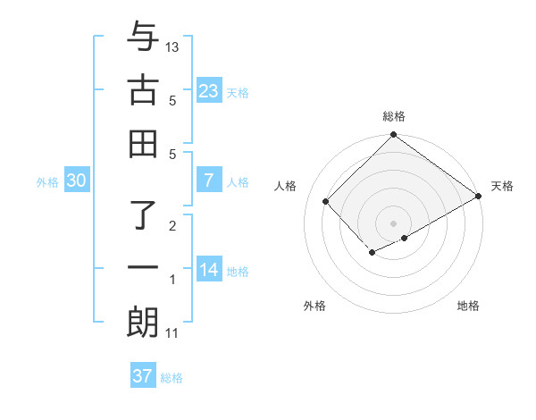 与古田 了一朗さんを姓名の画数から五運を鑑定
