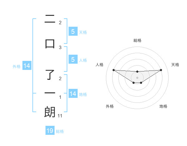 二口 了一朗さんの総格は19画の1点!