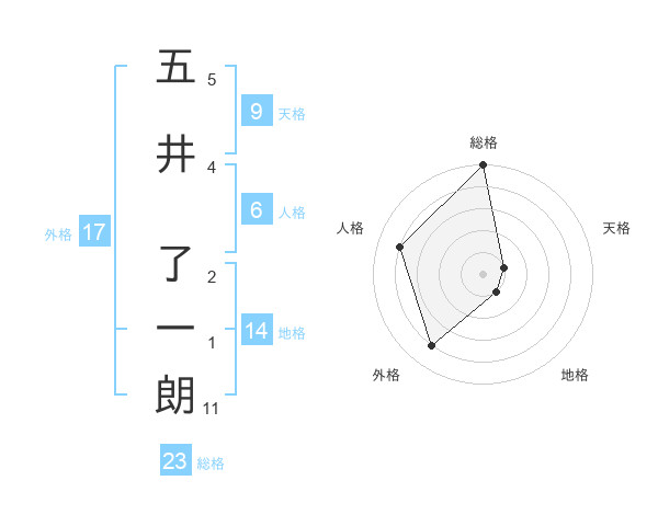五井 了一朗さんを姓名の画数から五運を鑑定