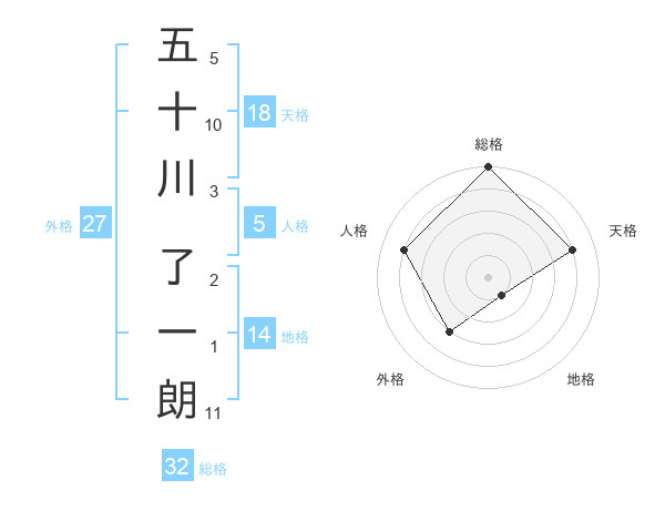 五十川 了一朗さんを姓名の画数から五運を鑑定