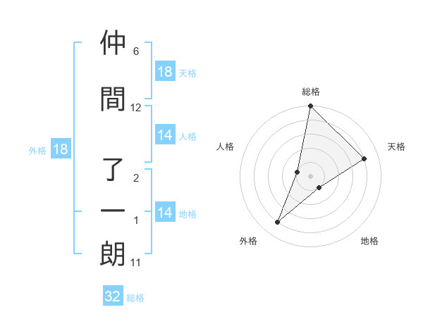 仲間 了一朗さんを姓名の画数から五運を鑑定