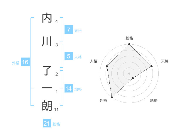 内川 了一朗さんの総格は21画の5点!