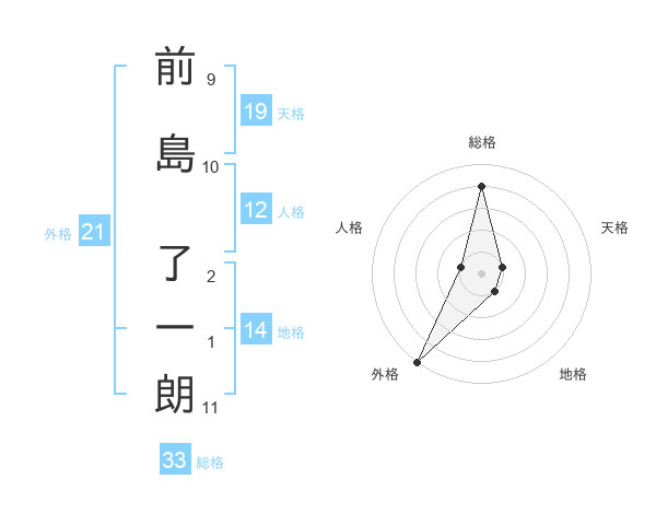 前島 了一朗さんの総格は33画の4点