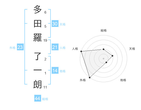 多田羅 了一朗さんを姓名の画数から五運を鑑定