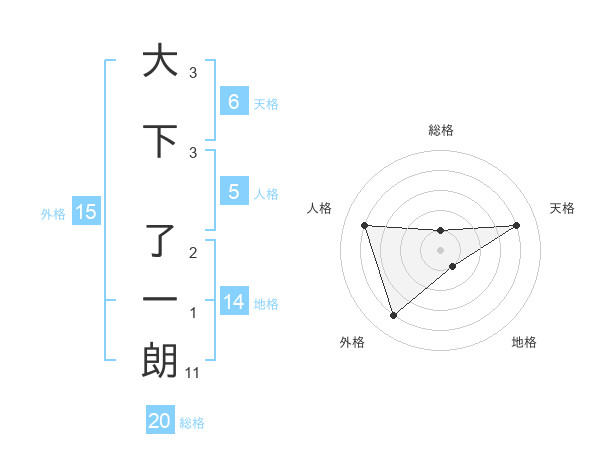 大下 了一朗さんを姓名の画数から五運を鑑定