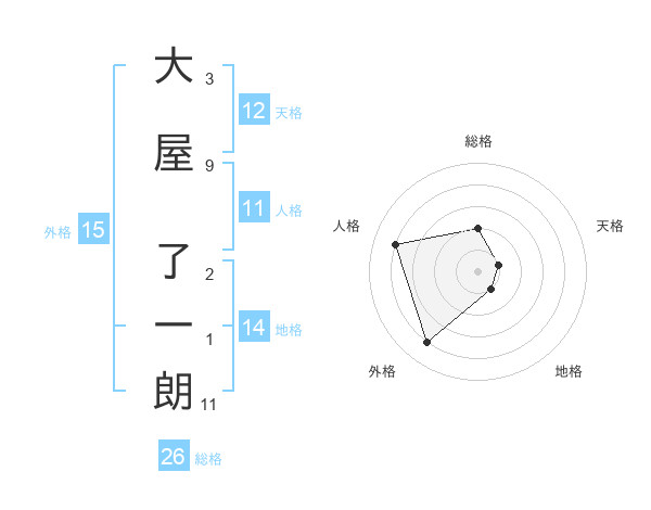 大屋 了一朗さんの総格は26画の2点!