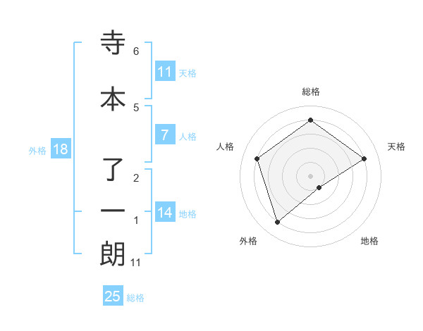 寺本 了一朗さんの総格は25画の4点!
