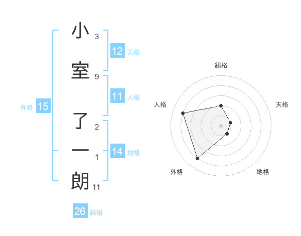 小室 了一朗さんを姓名の画数から五運を鑑定