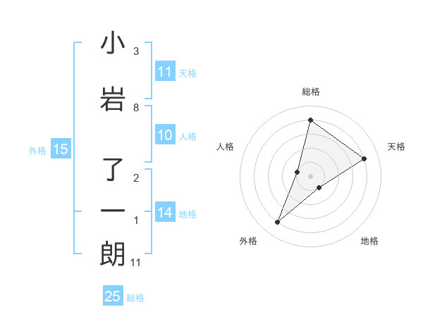 小岩 了一朗さんを姓名の画数から五運を鑑定