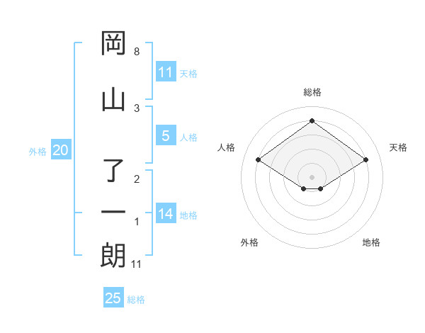 岡山 了一朗さんを姓名の画数から五運を鑑定