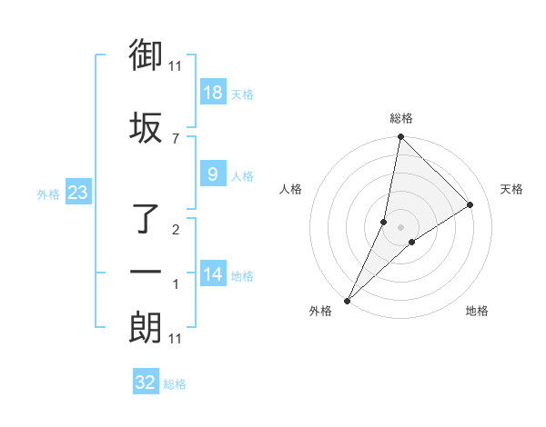 御坂 了一朗さんを姓名の画数から五運を鑑定