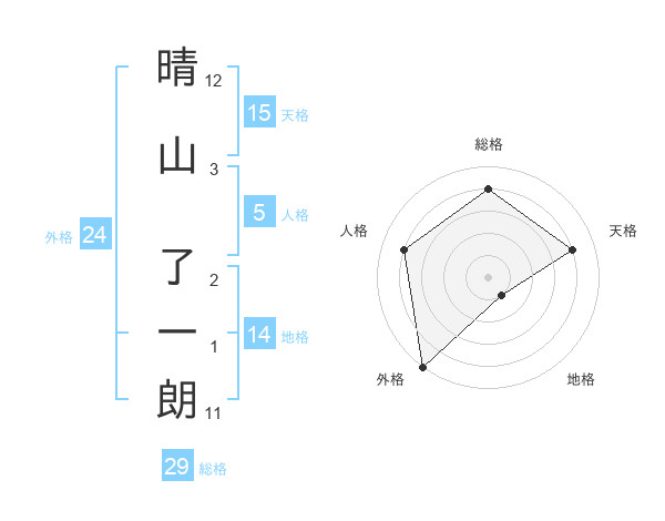 晴山 了一朗さんを姓名の画数から五運を鑑定