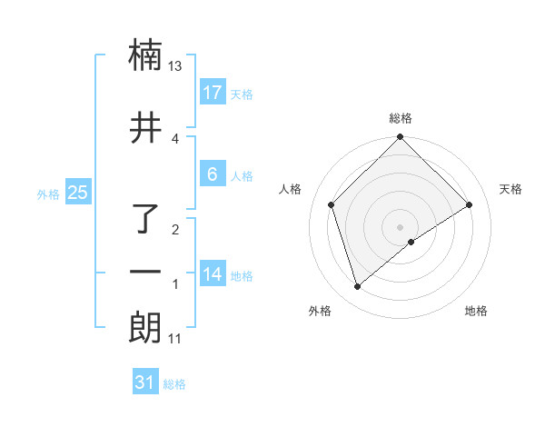 楠井 了一朗さんの総格は31画の5点!