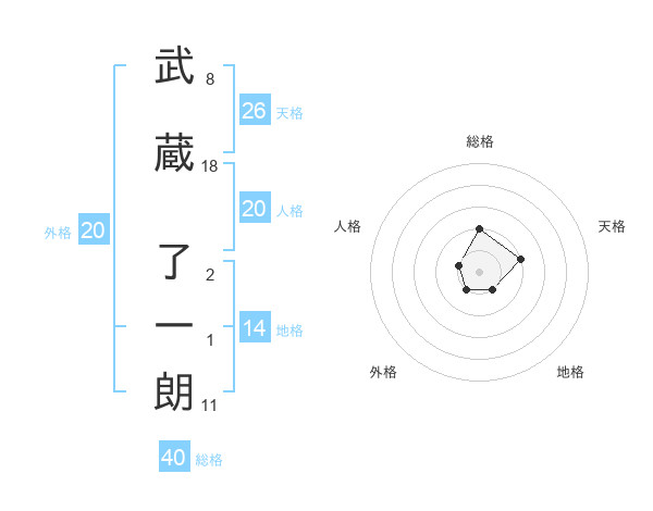 武蔵 了一朗さんを姓名の画数から五運を鑑定