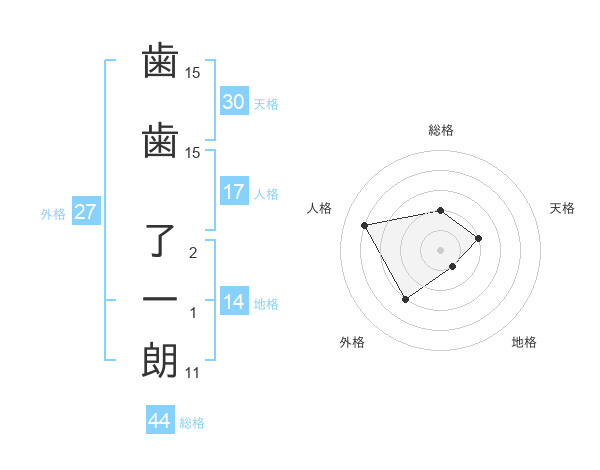 歯歯 了一朗さんの総格は44画の2点!