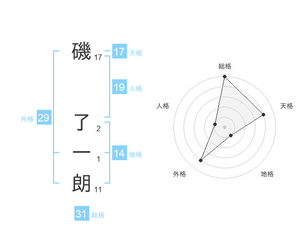 磯 了一朗さんを姓名の画数から五運を鑑定