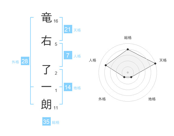竜右 了一朗さんの天格は21画の5点!