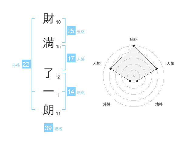 財満 了一朗さんを姓名の画数から五運を鑑定