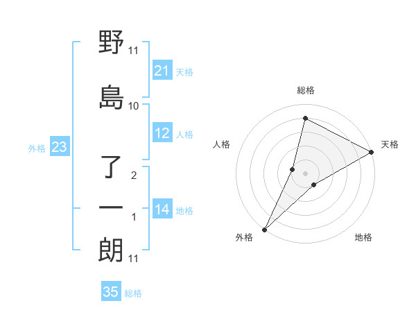 野島 了一朗さんを姓名の画数から五運を鑑定
