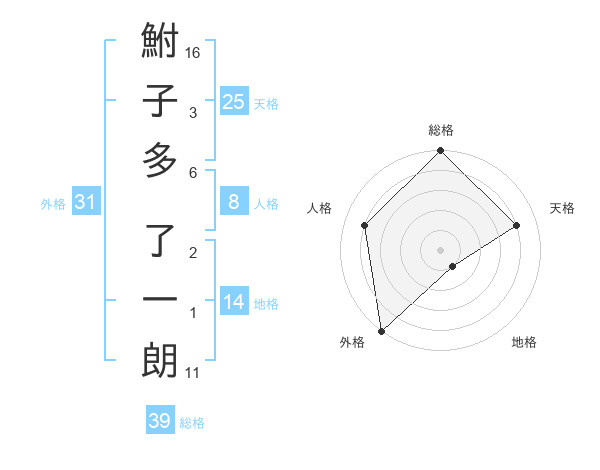鮒子多 了一朗さんを姓名の画数から五運を鑑定