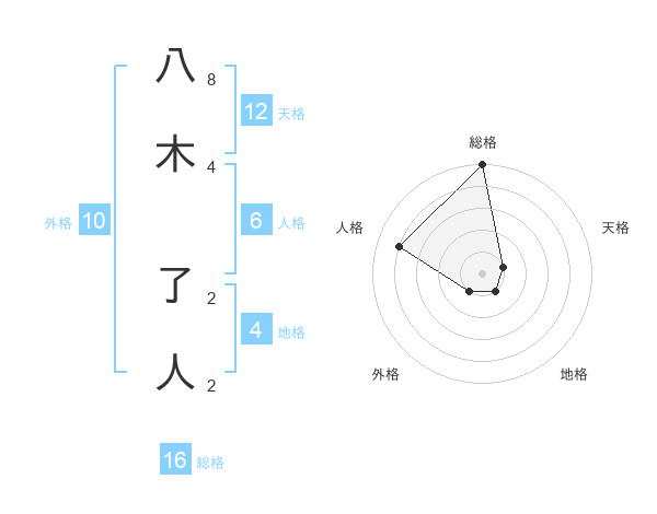 八木 了人さんの総格は16画の5点!
