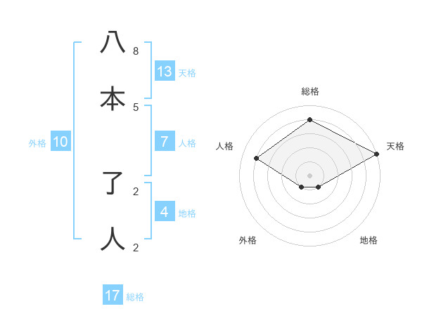 八本 了人さんの総格は17画の4点!