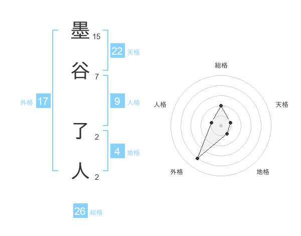墨谷 了人さんを姓名の画数から五運を鑑定
