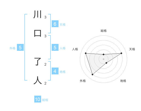 川口 了人さんの天格は6画の4点!