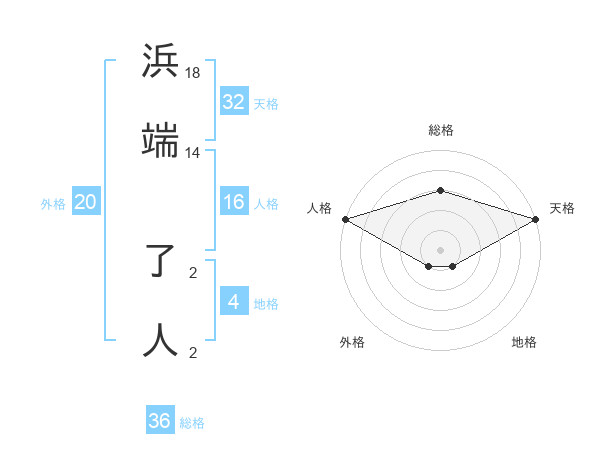 浜端 了人さんの天格は32画の5点!