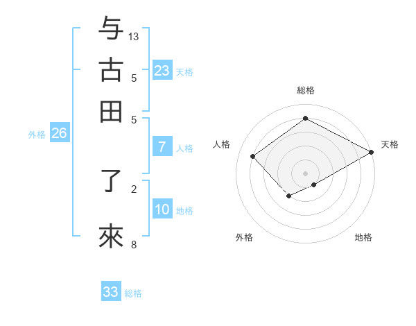与古田 了來さんの天格は23画の5点!