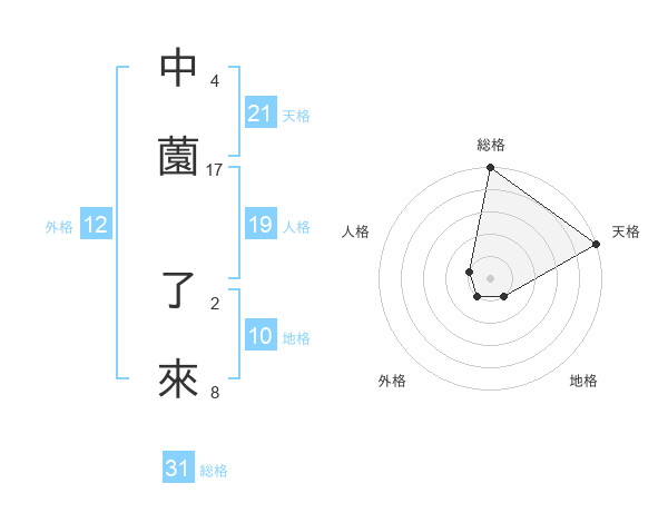 中薗 了來さんの総格は31画の5点!