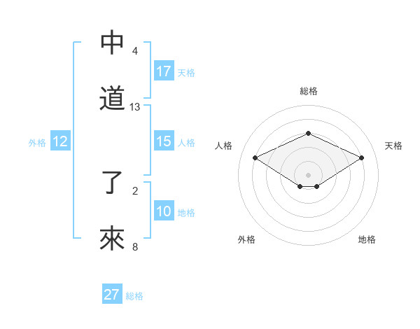 中道 了來さんの天格は17画の4点!