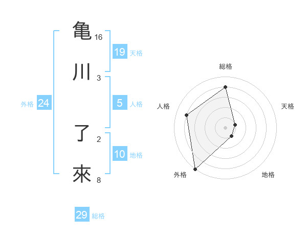 亀川 了來さんの外格は24画の5点!
