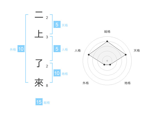 二上 了來さんの天格は5画の4点!