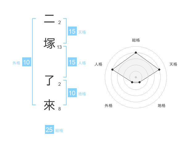 二塚 了來さんの総格は25画の4点!