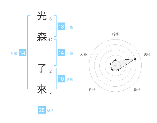 光森 了來さんの総格は28画の1点!