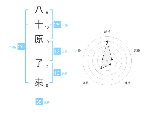 八十原 了來さんの総格は38画の4点!